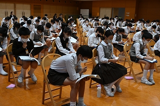 お話を聞いた後には、沈黙のうちにふり返りを行いました。