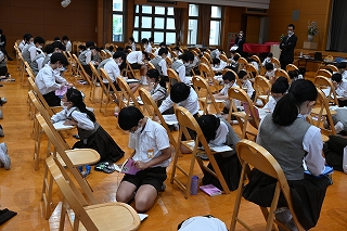 例年は山の家の自然の中で行っていましたが、今年度もコロナウイルス感染予防のため、学校内で行いました。