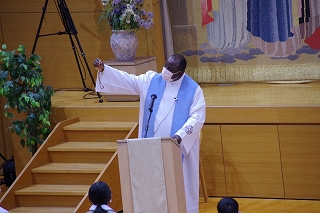 最後に教員全員が参加して「みことばの祭儀」を行いました。今日10月7日がロザリオの聖母の記念日であることにちなんで、神父様はロザリオの祈りについてお話しくださいました。いつでも、どこででも祈ることができ、そのことが私達を支えてくれるのです。
