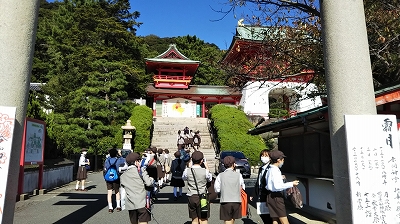 バスに乗り、最初に訪れたのは平家ゆかりの地、赤間神宮です。壇ノ浦の戦いで亡くなった安徳天皇や平家一門の武将の墓があるところです。後の琵琶法師、耳なし芳一の話も有名です。
