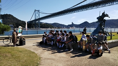 壇ノ浦古戦場跡では、佐々木小次郎と宮本武蔵の巌流島の決闘の紙芝居を見ました。