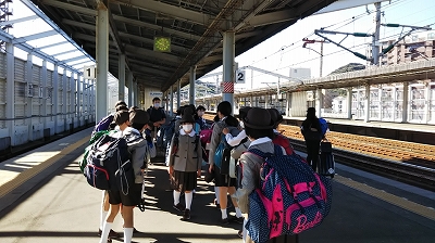 朝、京都駅に集合し、元気に出発しました。大分コースと同じ新幹線で、北九州コースは先に新下関で下車しました。