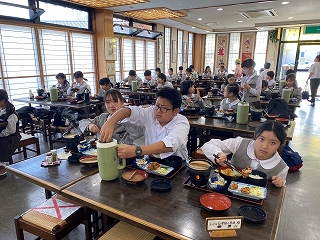 すべての見学を終えて、天ヶ瀬温泉に向かいました。おいしい夕食と温泉で疲れをいやし、今日学んだことをふり返りました。