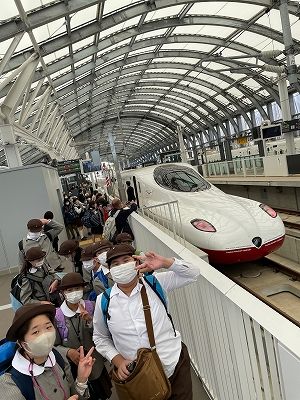 朝、京都駅に集合し、出発式を行いました。保護者の皆様に見送っていただき、新幹線ホームに向かいます。