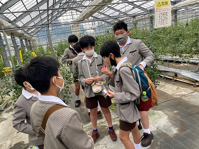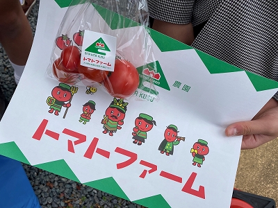 朝はまず、トマトファームに行きました。どんな風に使っているのかなどのお話を聞き、5種類のトマトをいただき、試食させてもらいました。どれも味が違うことに驚いていました。普段はトマトが苦手という児童もいましたが、チャレンジしてみるとおいしさがわかったそうです。ファームには「おいしい!」の声があふれていました。