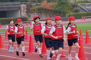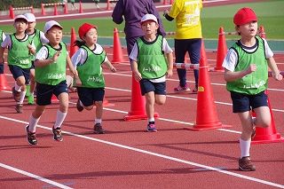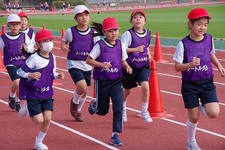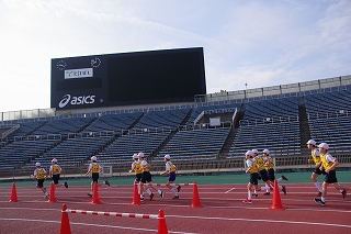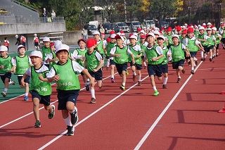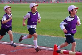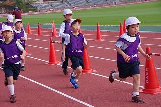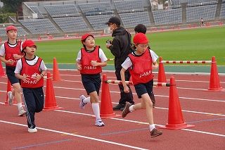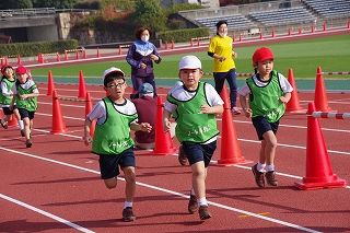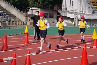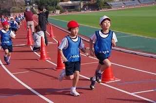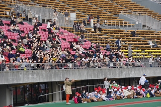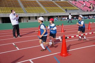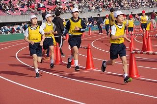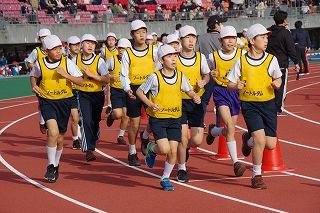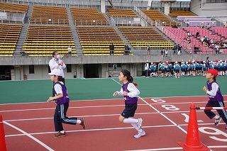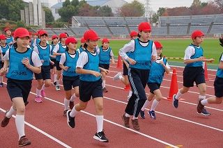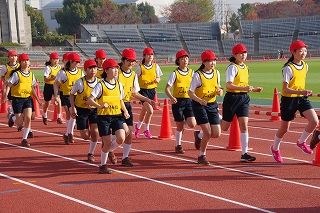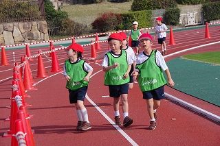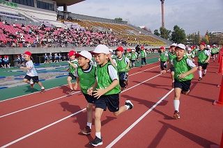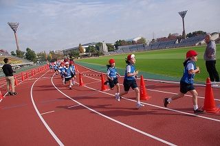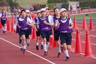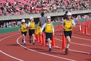 大きな競技場でも練習の成果が発揮できるように、全員がゴールするまで、観客席の保護者の皆様が拍手で応援してくださいました。子ども達も自分より後にゴールする友達を応援し、健闘をたたえあっていました。
