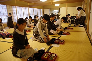 また、礼法室は畳で そこに正座をしてお食事をいただきます。