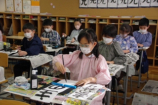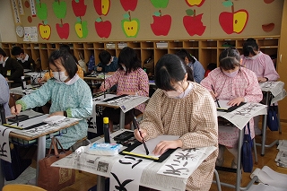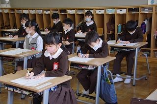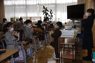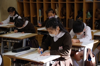 校長先生の話を聞きました。新年にあたり、どんな一年にしたいのかをひとりひとり考えました。