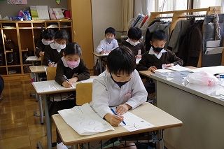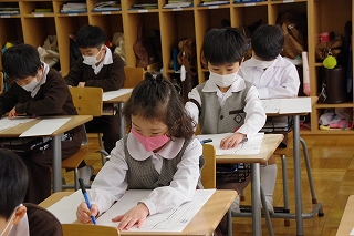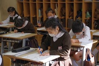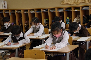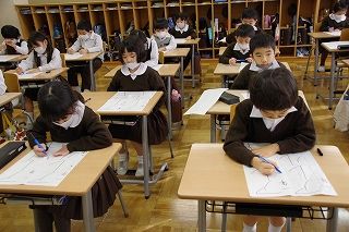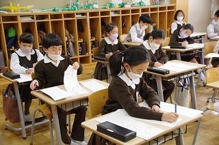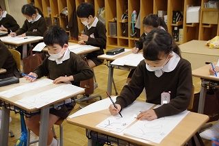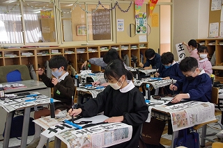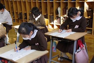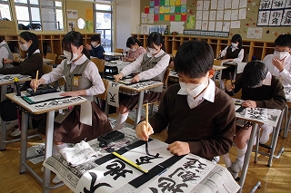 本校ではカトリック校にふさわしい、聖書や祈りの言葉を書き初めの課題に選んでいます。 心を落ち着けてから、ひと筆ずつ丁寧に書きました。