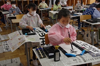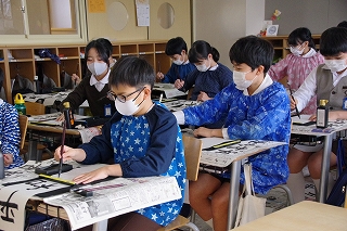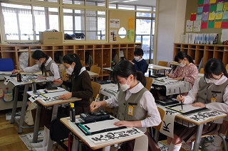 1月10日、後期後半の始業日に書き初め会を行いました。