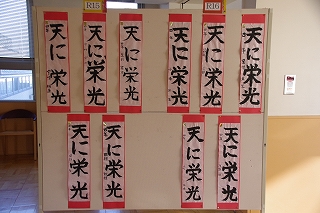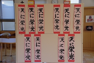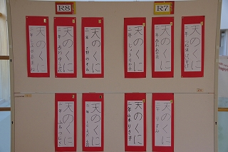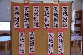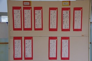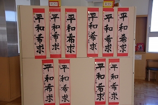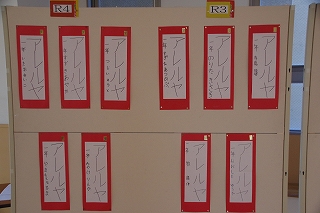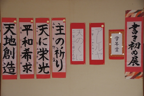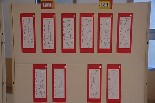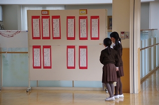 1月10日に行った書き初め会の全作品を「書き初め展」として校内に展示しています。