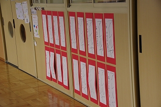 各クラスの金賞作品は各階コミュニティプラザに、銀賞作品は学年掲示板に、銅賞作品は教室に展示されています。(鑑賞時の密を避けるために、金賞作品も各階に分散して展示しています。)