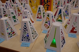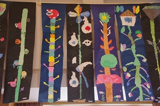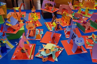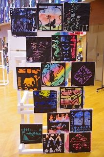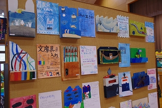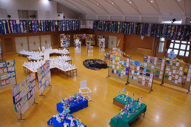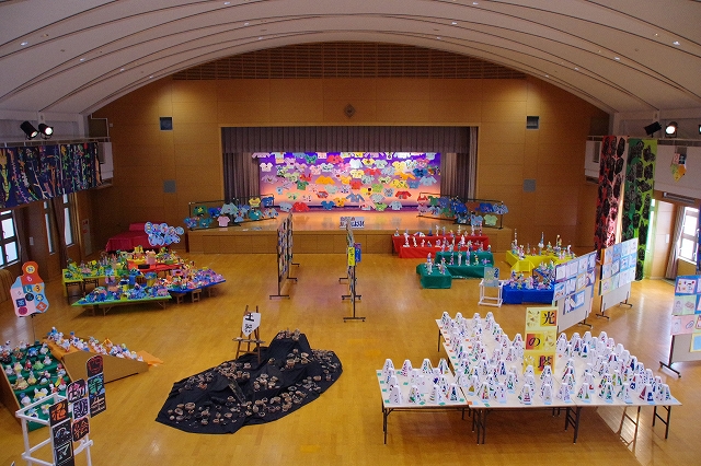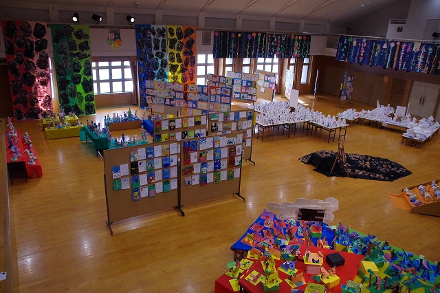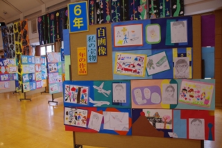 全校児童の作品が美しく飾られ、講堂がすてきな美術館になりました。