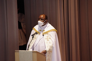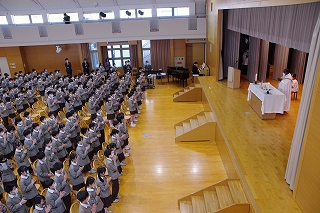 司式してくださったのは、ヴィアトール修道会のウィリアム神父様です。卒業生代表が聖書を朗読し、神父様のお話を聞きました。