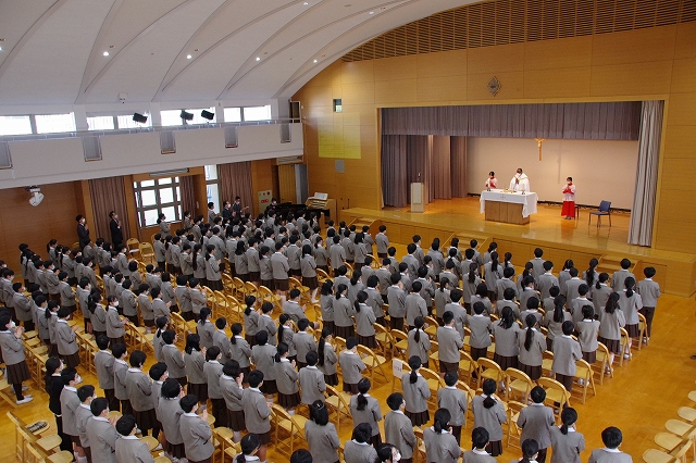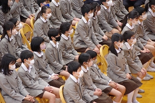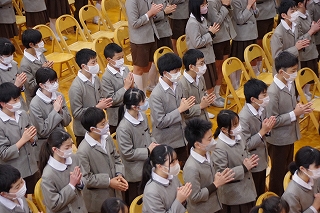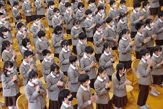 3月14日、6年生は明日に卒業式を控え「卒業感謝 祈りの式」に出席し、5年生と共に祈りのひとときを持ちました。