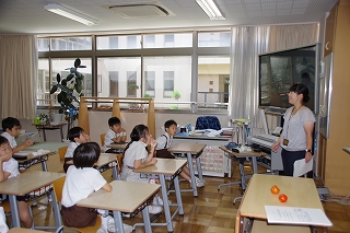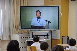 全校児童が校内テレビ放送を見ながら、前期前半をしめくくるひとときを持ちました。