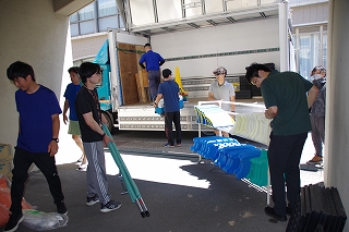 子ども達が帰った後、教員は5年生の臨海合宿に向けて力を合わせて荷物を出しました。臨海合宿には教員全員でのぞみ、5年生をサポートします。
