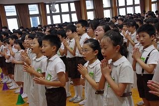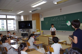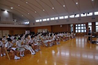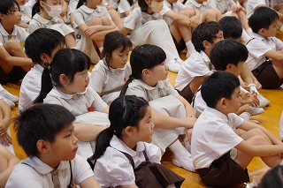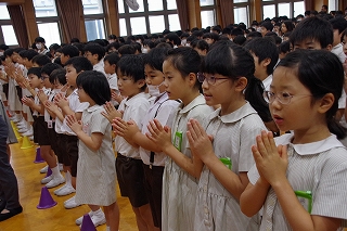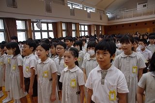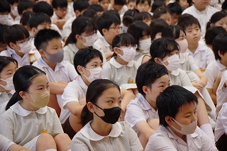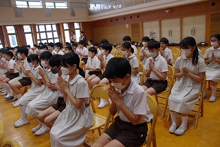 聖書の言葉についての校長先生のお話を聞きました。生きていることのすばらしさ、いのちの尊さについて改めて考えます。