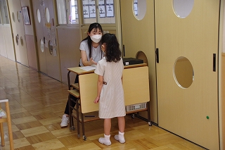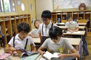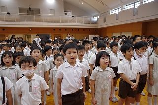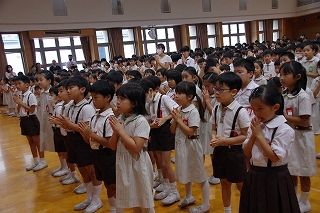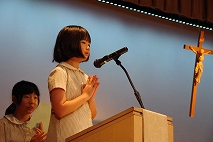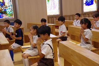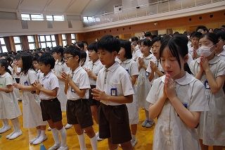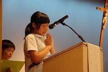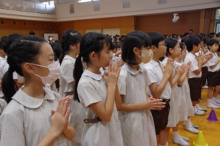 1,3,5年生の代表児童とともに共同祈願を行いました。前期の歩みをふり返りつつ、世界の人々、戦争や災害で困っている人にも心を寄せて祈りました。
