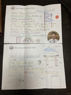 This year, the 4th, 5th and 6th graders have worked on writing letters to our sister school, Notre Dame Secondary School in Bandipur, Nepal.