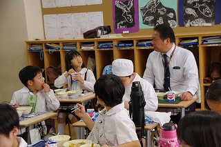 給食後は,「好きな食べ物は何ですか」「ペットを飼っていますか」「家に帰ったらどんなことをしていますか」など,子どもたちから質問攻めでした。最後に,私が,「給食はおいしいですか」とクラス全体に聞くと,「めっちゃおいしい!」と答えてくれました。「ハヤシライスが好き」「唐揚げが楽しみ」「納豆と青菜の和え物が好き」と,答えてくれた子どももいました。