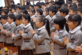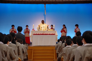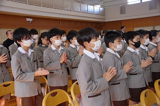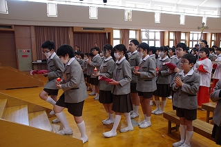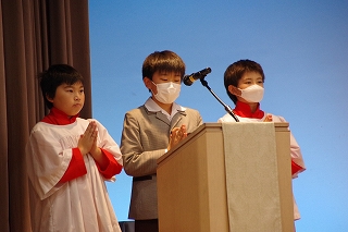 低学年の祈りの集い、高学年のミサともにおごそかな雰囲気の中、合唱クラブが聖歌隊をつとめました。