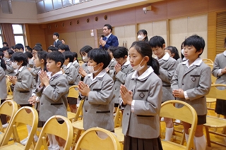 11月はカトリック教会で「死者の月」とされ、帰天された方々のために祈る月となっています。11月28日、低学年は祈りの集い、高学年はミサをそれぞれ行い、亡くなられた方々のために祈りました。