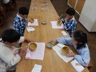 子ども達が絵付けをしたお茶碗をお客様が愛でてくださり、お話もはずみました。