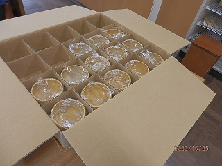 子ども達がお客様をおもてなししている間にも、ついたての裏側では茶道サークルのお母様方が忙しく立ち働いてくださっていました。お茶碗は子ども達が絵付けをし、保護者の方にお世話になり「桂窯」で焼いていただいた赤樂茶碗です。またお茶は「柳桜園」の「鳳の昔」です。一人ひとりが絵付けをしたお茶碗を間違えないよう本人に手渡してくださり、子ども達がお茶を運び始めました。