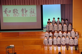 がんばった1年生にはおほめの言葉とあたたかい拍手がおくられました。