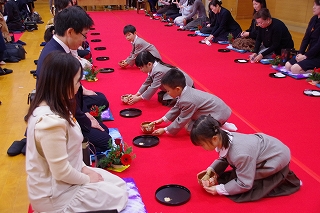 父母の会 茶道サークルのお母様方にも大変お世話になりました。1年生は退場後にお世話になったお母様方に感謝を伝えました。