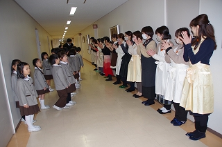 最後は歌を贈りました。本校音楽科 寺下教諭が作詞・作曲した「いのちのうふふ」です。「ありがとう、ありがとう、このいのちのリレーを」「ありがとう、ありがとう、生まれてきてよかった」という歌声に涙する方もおられました。