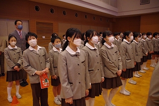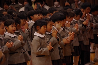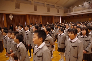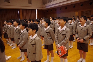 12月15日、全校児童が講堂に集まり、「クリスマスの集い」を行いました。