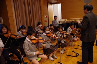 合唱クラブとオーケストラクラブの奏でるクリスマスの聖歌で集いが始まりました。