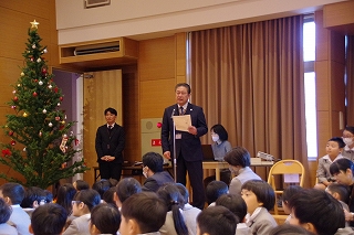 校長先生のお話を聞き、クリスマスの本当の意味を考えました。