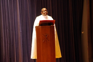 ヴィアトール修道会のウィリアム神父様がクリスマスについてお話ししてくださり、救い主イエス・キリストの誕生についての聖書の箇所を代表児童が朗読しました。