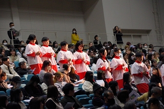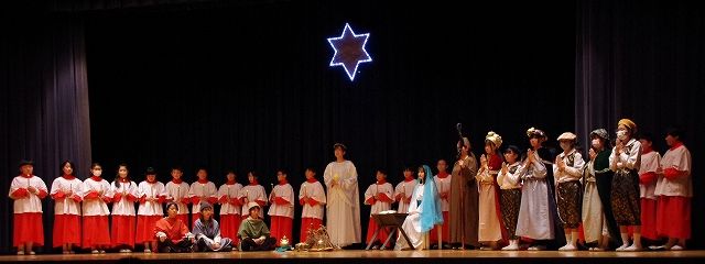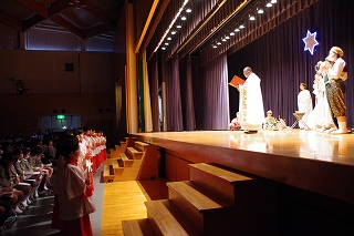 本校からは、タブロー、朗読、お祈りを担当する5,6年生の代表児童のほかに、5年生全員が客席で参加し、共にクリスマスを祝うひとときを持つことができました。