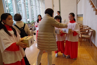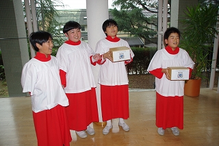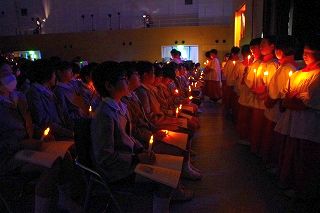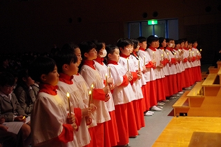 5年生の侍者の子ども達から始まり、キリストの誕生を伝えるかのように、キャンドルの灯りは会場全体に広がっていきました。