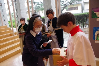 代表児童が共同祈願で祈りを捧げました。神父様の祝福をいただき、キリスト降誕の喜びを分かち合いました。