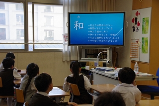 校長先生の選ぶ今年の漢字は「和」だそうです。世界の平和を願う気持ちも込められています。