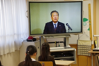 テレビ放送で終業式を行いました。朝の祈りの後、校長先生の話を聞いて、さまざまなことがあった今年の歩みをふり返りました。