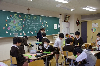 各クラスでは、冬休みの宿題を確認したり、お楽しみ会を開いたり、それぞれに今年最後の学校での時間をすごしました。