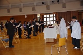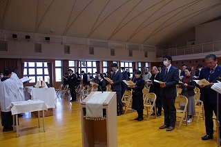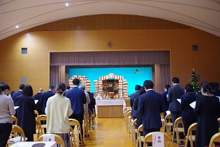 子ども達を送り出した後、教職員はヴィアトール修道会のウィリアム神父様の司式でクリスマスミサにあずかり、今年の恵みに感謝して一年を終えました。