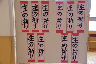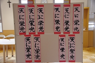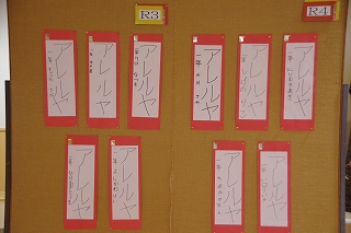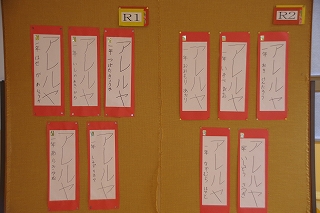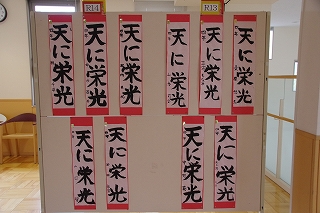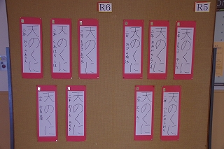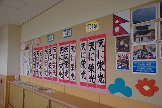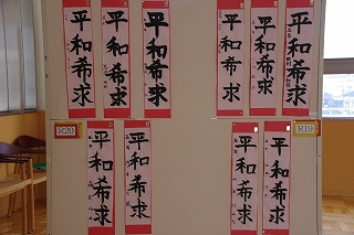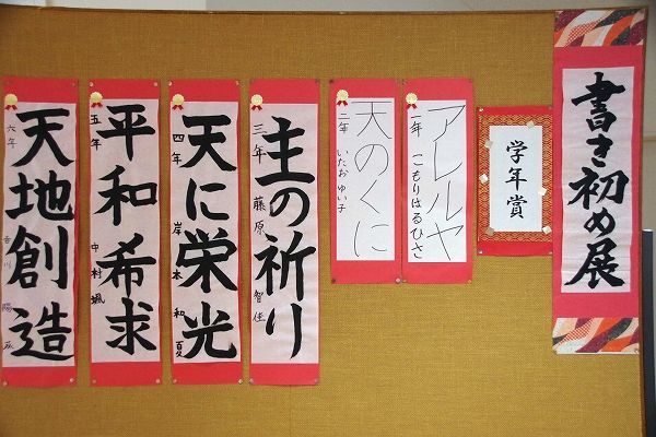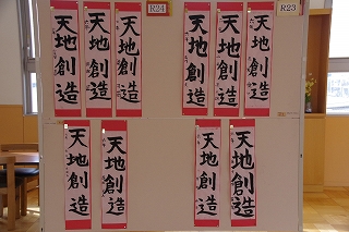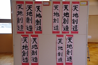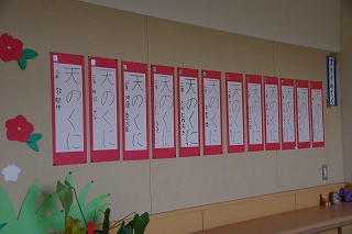 1月9日に行った書き初め会の全作品を「書き初め展」として校内に展示しています。