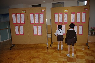 各クラスの金賞作品は各階コミュニティプラザに、銀賞作品は学年掲示板に、銅賞作品は教室に展示されています。