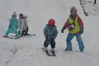 1月18日に行った2クラスはあいにくの雨の中でしたが、スキーウェアの上にレインコートを着てスキー学習に臨みました。濡れながらも子ども達はよくがんばりました。