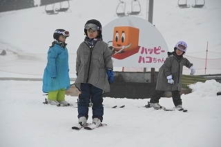 学校からクラスごとにバスで出発しました。箱館山スキー場のふもとの駐車場でスキースクールのインストラクターの先生方と対面し、一緒にゴンドラでゲレンデに向かいました。
