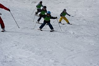 学校から行く2度目のスキーです。昨年習ったことを思い出しながら、スキー班ごとにインストラクターの先生について雪に慣れていきました。