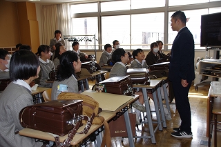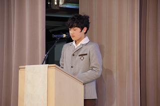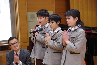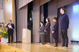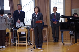 教頭先生が在校生全員の今年度の課程の修了を宣言しました。その後、退職する先生方のあいさつを聞きました。今までの感謝を込めて拍手を送りました。