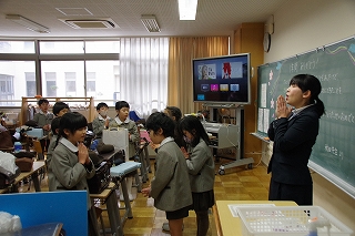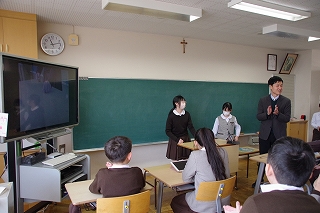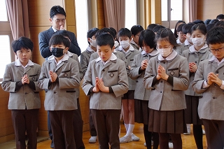 共同祈願は2,4,5年生の代表児童が行い、皆で心をあわせて祈りました。もうすぐイースター(復活祭)なので、十字架の道行きの祈りもささげました。